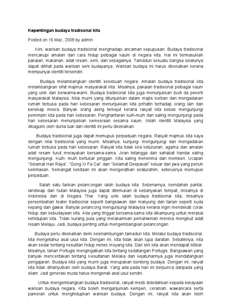 Kepentingan Budaya Tradisonal Kita Artikel Pdf
